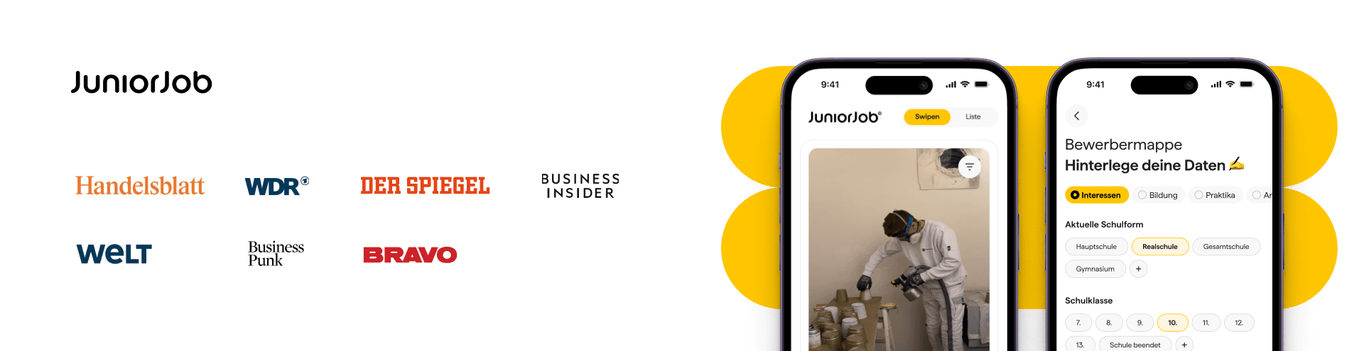 Wir haben den gesamten Prozess von Jobsuche bis zur Bewerbung neu gedacht und auf uns Schüler abgestimmt. So kurz und verständlich wie möglich, um jeden bei der Jobsuche zu unterstützen.